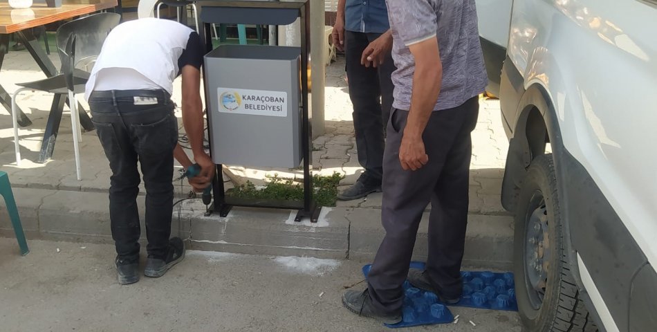 Daha temiz bir Karaçoban İlçesi için; Kaymakamlık Binası, Belediye Binası, İlçe tarım Binası, Ziraat Bankası, PTT ve Cami önleri başta olmak üzere İlçe cadde ve sokaklara dış mekan çöp kovası yerleştirdik