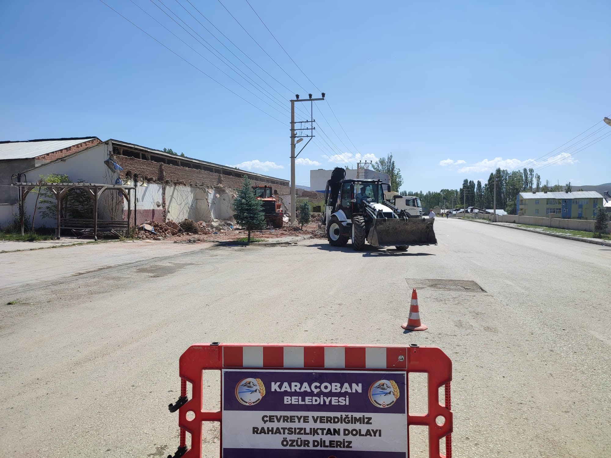 Belediyemize ait yıkık ve harabeye dönmüş olan dükkanları; ilçemizin ihtiyaçları göz önüne alınarak alanda yeni projeler yapmak ve çevreye verdiği kötü görüntüden kurtarmak için yıkımına başladık.